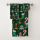 Green christmas design with christmas trees, candy canes, christmas stockings and gingerbread men cookies.