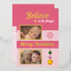Christmas baubles stars snowflake photos pink foil holiday card