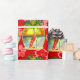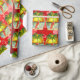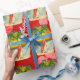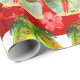 Happy Holidays from the warm sandy beaches of your favourite tropical island beach. Palm tree decorated with Christmas ornaments and lights, with a retro surfboard leaning against the Christmas tree in front a sunset over the ocean. Red holiday colour background of Hawaiian Honu sea turtles and hibiscus flowers.