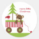 Adorable little bear, tree and bird in a candy stripe wagon. Perfect for Christmas stickers, December baby showers and birthday stickers for little ones.