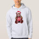 This festive design depicts a seated brown bear, wearing a red and white Christmas cap. The bear is surrounded by bright yellow garlands that add a touch of magic and warmth to the image. Between its legs, the bear holds a large red gift decorated with white snowflakes and decorated with a red ribbon. On the gift you can read the message "Happy Christmas" written in white and elegant letters. This design is perfect for celebrating the holiday season with a touch of softness and friendliness.