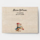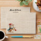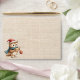 Beige faux burlap as background. Personalise and add a name and your return address. The name is written with a modern and trendy handlettered style script. Decorated with a cute owl delivering an envelope.