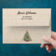 Beige faux burlap as background. Personalise and add a name and your return address. The name is written with a modern and trendy handlettered style script. Decorated with a watercolored Christmas tree.
