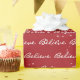 Believe text with snowflakes on red background.