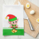 Christmas bells and cute elf on green and white Kitchen Towel. Ideal for Christmas Season!