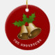 Christmas Bells with Holly Personalised Ceramic Ornament.
