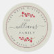 Rustic and simple family return address classic round sticker with your family name in off-black elegant script on a sage green background and a stylish touch of berries sprig. Simply add your name and address. Exclusively designed for you by Happy Dolphin Studio. If you need any help or matching products please contact us at happydolphinstudio@outlook.com. We're happy to design the most beautiful personalised Christmas stationery for your family!