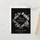This Minimalistic Christmas greeting card features a Christmas botanical frame with red berries, lush greenery leaves and light green twigs on the simple black background. Please your loved ones with this stylish Christmas card.