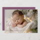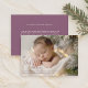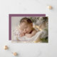 This minimalist and stylish design also includes customisable text templates directly on the front for baby's name, birth stats, and an optional short message, making it incredibly easy to personalise. The back of the card offers additional space for a longer, heartfelt message, allowing you to share more joy with friends and family. Lavender pink and plum purple colour scheme.