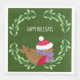 This adorable little bird is wearing his red holiday hat and purple scarf. He's sitting on green holiday branches with red berries. You can change the background colour and customise the text.
