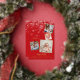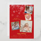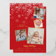 An elegant real gold foil 4 photo collage holiday birth announcement card to personalize with your special photos framed in gold, holiday message, names and birth stats. The reverse features falling snowflakes. You can customize the background color to match your holiday theme. Designed by Thisisnotme©