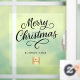 Elegant Christmas window cling for Businesses. Transparent background, black text, script.