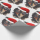 Christmas Black Tan Long Haired Doxie Santa Hat Wrapping Paper