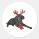 Christmas Black Toy Poodle Dog Dressed as Reindeer Classic Round Sticker
