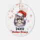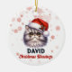 Personalised Christian ornament, cute persian cat with Christmas hat, bible quote on the back, and snow background. Luke 2:14 "Glory to God in the highest, and on earth peace among those with whom he is pleased!"