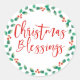 Sweet and traditional. These Christmas envelope seals begin with a green holly watercolor wreath with tiny red berries. It looks very festive. Christmas Blessings is written in red in the white centre. The modern handwritten font adds to the open and airy vibe. It also keeps the focus on the true meaning of Christmas. Keep the focus on the real meaning of Christmas with this sentiment. Your Christmas cards and invitations will look even more wonderful when you add one of these.