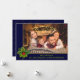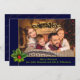 Christmas Blue and Gold Frame With Holly Photo Holiday Card