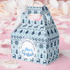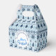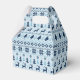 Customisable Merry Christmas favour box (gable) in blue. Your name and message on beautiful Lapland style pattern in blue with transparent background (here pale blue background). You can easily change background colour and text (font, size, colour and position) by clicking the customise button..Other models are available. Matching personalised Christmas other craft products, Paper napkin, paper plate and more...