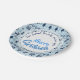 Customisable Merry Christmas paper plate in blue. Your name and message on beautiful Lapland style pattern in blue with transparent background (here pale blue background). You can easily change background colour and text (font, size, colour and position) by clicking the customise button..Matching personalised Christmas Paper napkin and more... Other models are available.