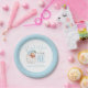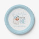 Oh what fun, it is to be One! Christmas blue Santa first birthday party plates with watercolor blue santa.