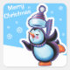 Christmas bright blue square sticker Penguin skating and other Snowfolk.