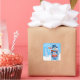 Christmas bright blue square sticker Snowman drummer. and other Snowfolk.