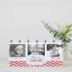 Pretty red and white chevron pattern and festive stripes in blue and red send family and friend Christmas greetings in this thoroughly modern photo greeting card.