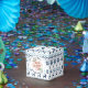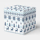 Customisable Merry Christmas with traditional vintage graphic (Holly leaves) favour box. Your name and message on beautiful Lapland style pattern in blue and white background. Matching personalised Christmas craft products, Paper napkin, paper plate and more... Other models are available.