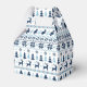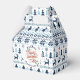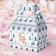 Customisable Merry Christmas with traditional vintage graphic (Holly leaves) favour box (gable). Your name and message on beautiful Lapland style pattern in blue and white background. Matching personalised Christmas craft products, Paper napkin, paper plate and more... Other models are available.