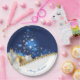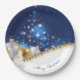 This Classy Blue White Paper Plate features Christmas gold and white ornaments with gold string of pearls and a stylised Christmas tree. Personalise it with your own words.