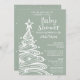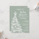 Christmas tree Boho sage green baby boy shower invitation with a cute whimsical fun Gender Neutral baby shower invitation for a festive Holiday baby shower.