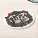 Christmas Boston Terrier Dogs Holiday Wreath Round Paper Coaster