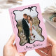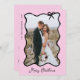 These chic and stylish holiday cards feature your favourite photo in a trendy black wavy frame with a whimsical bow, on an elegant blush pink background. Modern script says "Merry Christmas," and there is room for a personal message on the back.