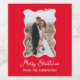 These adorable holiday wine labels feature your favourite photo in a trendy, white wavy frame with a whimsical bow, on a festive red background. Modern script says "Merry Christmas."