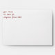 Holiday envelope with a with red silhouette of candy canes, leaves, and bows on green background and customizable text return address on the front of the envelope.