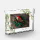 Greenery branches with red berries highlight favourite photo on this acrylic photo block. Great as a gift or to display your favourite photo in your own home.