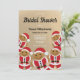 A seasonal, Christmas, bridal shower invitation that features smiling gingerbread man Santa cartoons to make it festive and fun. The invitation is gold (non-foil), red, black, and white. Simply customise the words, add this invite to your cart, and have a great bridal shower.