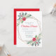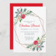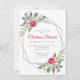 Elegant Christmas brunch invitation featuring watercolor bouquets of seasonal florals, berries, holly and greenery on a gold copper geometric frame. Easily personalise the type of event (brunch, dinner, tea, etc.), as well as other event details in modern red and green script and typography.
