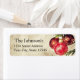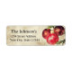 These Christmas return address labels feature red decorative bulbs and evergreens.