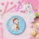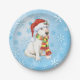 Celebrate the holiday season with a cute Bull Terrier puppy wearing a Santa hat and scarf surrounded by snowflakes. Happy Howlidays!