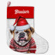 Christmas Bulldog with Name Woof Background Large Christmas Stocking