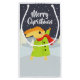 Cute personalised Christmas gift bag for kids with bunny wrapped up for winter catching snowflakes.