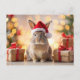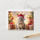 Christmas Bunny rabbit sitting with a Santa hat Holiday Postcard