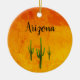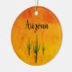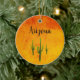 Christmas ornament, with a saguaro cactus design on a bright orange and yellow background. With black typography lettering, you can customise with your own text. A fun way to add a touch of the desert southwest to your holiday Christmas tree.