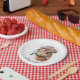 watercolor painting of a camel with a pink woollen knit winter hat in christmas style