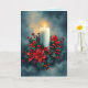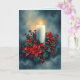 The bright colours of poinsettias and holly offset the mystical blue mist and yellow candle flame in this Christmas note card. Blank inside for you to write your most expressive thoughts and wishes to a loved one. Designed with the use of artificial intelligence software.