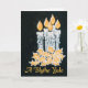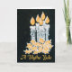 A chic Christmas Card with the greeting in Scots language and five candles with holly, hand-painted in gold and silver paint on a starry black background.