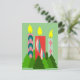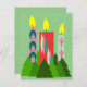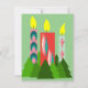 This flat, blank notecard has a Christmas design of candles made of rectangles decorated with stars, ovals, or diamonds with trees grouped around the bottom. Add your own personal message on the back.