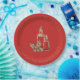 Christmas Candles Holly Red and Gold Faux Gold Foil Glitter Elegant Christmas Party Paper Plate with custom text, you can change or delete the text