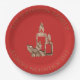 Christmas Candles Holly Red and Gold Elegant Paper Plate